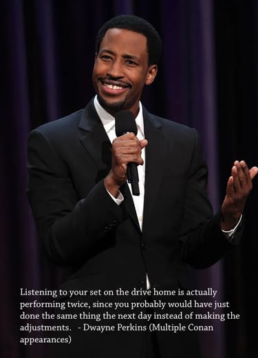 Comics in New York/LA often record their sets from a 7PM open mic, listen to it on the way to an 8PM showcase, and then repeat that as they go to a 10PM show and have already made 2-3 adjustments to the joke.